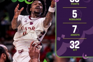 不过卡塔尔男篮的归化球员、上海外援古德温打出精彩表现,出战35分钟09秒,17投10中,三分9投4中,罚球11罚9中,砍下33分5篮板7助攻2抢断,不过也有6次失误。