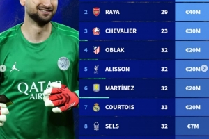 体育资讯8月7日讯 2025年雅辛奖10人候选名单公布,以下为10人德转身价榜: