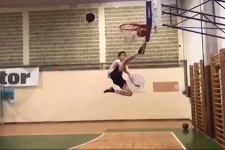 早在2017年,14岁的塞斯科就展现出了惊人的运动天赋。在一段视频中,塞斯科高高跃起,用脚踢出了位于篮筐边缘的篮球,而标准的篮筐高度为3.05米。