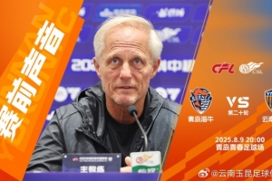 安德森:“大家下午好,很开心来到青岛这座美丽的城市,非常期待明天的比赛。刚才看了一下场地的情况,球场非常棒。青岛海牛目前取得了11个积分,其中有10个积分是在主场取得的。我们会尽全力做好备战,明天到了比赛中全力拼搏,继续坚持我们的攻势足球,希望可以顺利拿到分数返回云南,谢谢。”