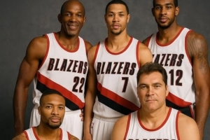 据统计,整个职业生涯德雷克斯勒场均20.8分6.2篮板5.7助攻;阿德场均19.4分8.4篮板1.9助攻;萨博尼斯场均12分7.3篮板2.1助攻1.1盖帽;罗伊场均18.8分4.3篮板4.7助攻。职业生涯至今利拉德场均拿到25.2分4.2篮板6.7助攻,他是该合成图里唯一一个现役球员。
