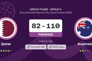 体育资讯8月10日讯 男篮亚洲杯今天继续进行,澳大利亚男篮110比82大胜卡塔尔男篮,小组赛3战全胜,锁定A组第1。