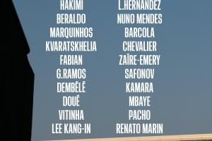 前锋:克瓦拉茨赫利亚、拉莫斯、登贝莱、杜埃、李刚仁、巴尔科拉、姆巴耶
