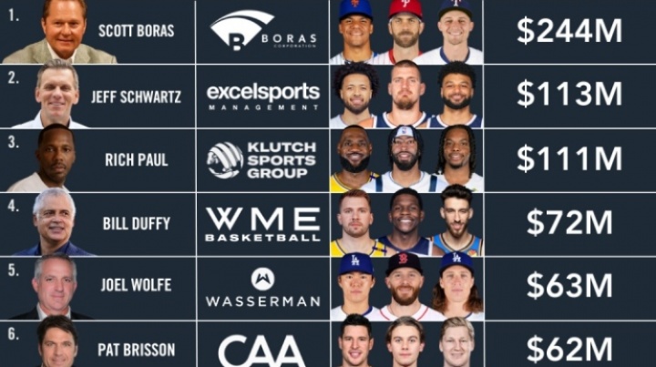 体育资讯08月13日讯 《福布斯》公布2025年体育经纪人的佣金榜单,其中最为我们熟知的里奇-保罗仅排名第三。