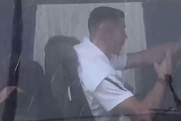 利雅得胜利暂未发布C罗抵达中国香港的官方照片,但有前方人士拍摄到了C罗乘上球队大巴车的画面。