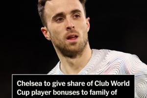 在世俱杯夺冠后,切尔西拨出了1550万美元的奖金,用于平均分配给切尔西队内参赛的每名球员。最终俱乐部和球员共同决定,拿出一份奖金捐赠给若塔的家人,均分的奖金份额超过50万美元,最终还需扣除兑换以及税收等成本。