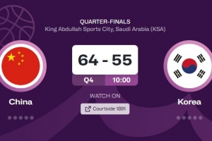 前三节比赛,中国男篮罚球11罚8中,韩国男篮24罚20中。第三节比赛,韩国男篮17罚15中。