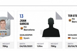 由于特尔施特根的伤病,霍安-加西亚已经顺利在西甲完成了注册,他的球衣号也已经确定为是13号,而此前身穿13号的佩尼亚则改穿1号。