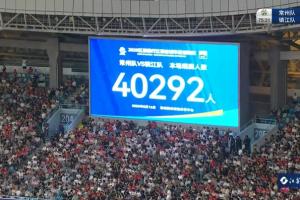 据比赛现场大屏幕显示,本场比赛到场观战的现场观众人数为:40292人!