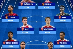 前锋:约克雷斯(阿森纳)、塞斯科(曼联)