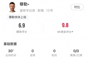 体育资讯8月18日讯 美职联第27轮,温哥华白浪1-1战平休斯顿迪纳摩,穆勒第60分钟替补登场上演自己温哥华生涯的首秀,他打进1球但是队友被吹越位,获评6.9分。