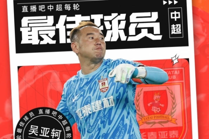 【体育资讯】中超第21轮最佳球员评选出炉,34岁门将吴亚轲当选本轮最佳!吴亚轲在长春亚泰与梅州客家的保级关键战中扑点+多次神扑,帮助亚泰1-0取胜抢下3分。