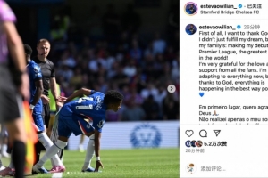 赛后,埃斯特旺更新社媒向球迷致谢,并晒照纪念自己英超首秀。