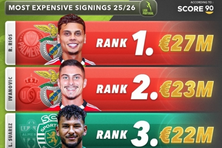 1、里奥斯,帕尔梅拉斯→本菲卡,2700万欧
