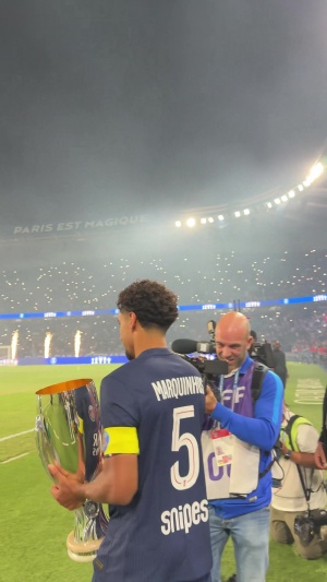 巴黎在王子公园球场展示了球队上赛季获得的奖杯,以及欧洲超级杯奖杯,俱乐部官方社媒晒出视频,配文:“我们的冠军。”