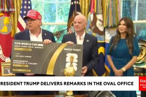 体育资讯08月23日讯 特朗普参加发布会,被问及2026世界杯相关问题,调侃自己会去踢球。