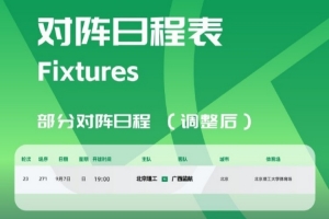 体育资讯8月23日讯 中乙联赛官方发布比赛公告,宣布中乙联赛第23轮广西蓝航对阵北京理工的比赛安排进行调整。