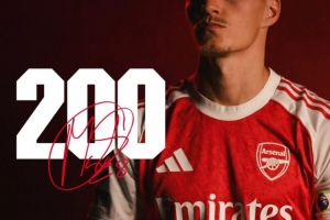 这是厄德高阿森纳生涯各项赛事第200次出场里程碑,在此前的比赛中厄德高为球队贡献41粒进球和37次助攻。