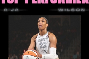 阿贾-威尔逊此役表现炸裂,出战33分钟,22投14中,三分2投1中,罚球8罚7中,爆砍36分13篮板2抢断2盖帽。