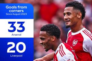 体育资讯08月24日讯 天空体育统计了自2023年8月以来,英超各队通过角球取得的进球数量,阿森纳33球居首。