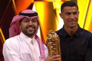 在闭幕式的颁奖仪式上,C罗展示了本届电竞世界杯的冠军奖杯,并向夺冠战队Falcons颁奖。