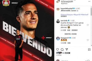 勒沃库森官方社媒宣布免签巴斯克斯,他的皇马老队友克罗斯留言道:“祝你好运,朋友,很期待听到你说德语!”