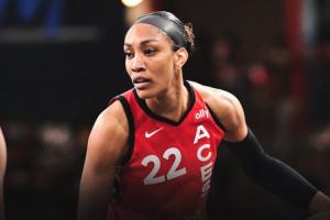 阿贾-威尔逊出战35分钟,投篮21中13,三分3中2,罚球8中6,砍下34分10篮板1助攻1抢断4盖帽,正负值+13!