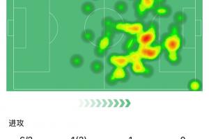 6次射门2次射正,4次尝试过人2次成功,6次地面对抗成功4次。