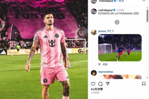 体育资讯8月28日讯 阿根廷中场德保罗更新社媒,庆祝迈阿密国际晋级联盟杯决赛。