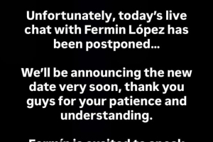 原本费尔明今天将参加社交媒体平台The Residency的直播对话活动,但平台方面表示活动已经被推迟,并表示很快会宣布新的活动日期。
