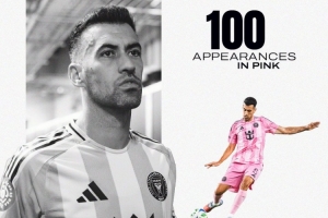 体育资讯8月28日讯 联盟杯半决赛,迈阿密国际3-1逆转奥兰多城晋级决赛,迈阿密官方晒海报祝贺布斯克茨迎来100场里程碑。