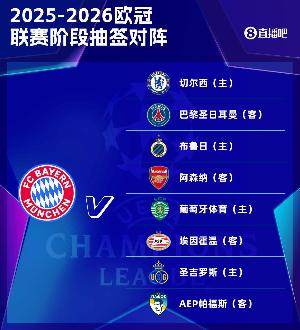 体育资讯8月29日讯 2025-26赛季欧冠联赛阶段抽签揭晓,拜仁与巴黎将狭路相逢。