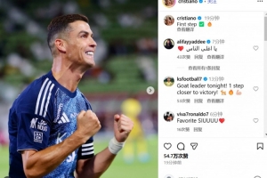 在社交媒体上,C罗晒出了自己的庆祝照并配文道:走出第一步!