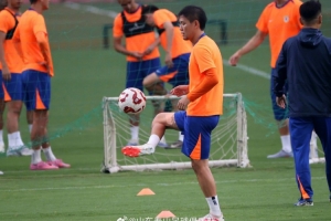 8月30日晚,山东泰山队在基地内进行了与北京国安队的赛前官方训练。