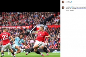体育资讯8月31日讯 英超第3轮,曼联主场3比2击败伯恩利,艰难地取得联赛首胜。德里赫特社媒感谢球迷支持。