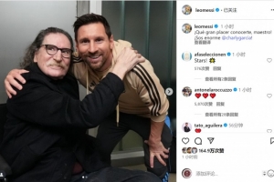 体育资讯9月6日讯 梅西更新社媒动态,晒出与阿根廷著名摇滚音乐家查理-加西亚的合照。
