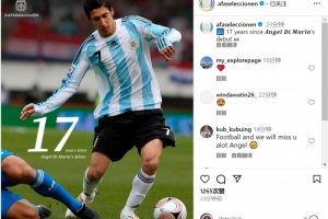 体育资讯9月6日讯 阿根廷队官方更新社媒动态,回顾17年前的今天迪马利亚上演国家队首秀。