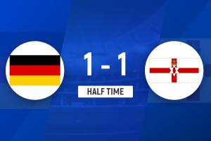 体育资讯9月8日讯 北京时间9月8日凌晨2时45分,世预赛欧洲区小组赛A组第2轮,德国坐镇莱茵能源球场对阵北爱尔兰。上半场,格纳布里首开纪录,普莱斯扳平,随后劳姆打进一球,但是被判越位在先。半场战罢,德国暂1-1北爱尔兰。