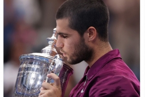 皇马皇马社媒晒出阿尔卡拉斯亲吻奖杯的照片,配文:“亲爱的阿尔卡拉斯,祝贺你获得第二个美网冠军,你的第六个大满贯,以及实至名归的世界网球排名第一。我们皇马人永远支持你,为你感到无比骄傲!祝贺你,冠军!”