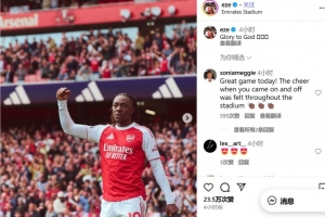 体育资讯9月14日讯 在阿森纳3-0诺丁汉森林的赛后,阿森纳球员埃泽更新社交媒体。