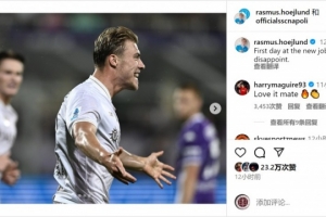 霍伊伦社媒庆祝进球和胜利,配文:“新工作的第一天没有让人失望。”