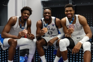 季军战字母哥砍下30分17篮板6助攻,科斯塔斯拿到3分4篮板,萨纳西斯登场38秒没有数据入账。
