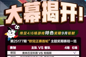传足4/6场游戏特色奖期第25177期竞猜对象本赛季欧冠正赛(联赛阶段)首轮赛事。作为世界足坛最受关注的赛事之一,进入联赛阶段标志着欧冠赛事的大幕正式揭开。本期竞猜具体对阵为:奥林匹亚科斯VS帕福斯、布拉格斯拉维亚VS博德闪耀、阿贾克斯VS国际米兰、拜仁慕尼黑VS切尔西、利物浦VS马德里竞技和巴黎圣日尔曼VS亚特兰大。