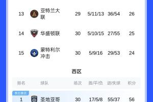 美职联东区最新积分榜上,迈阿密国际少赛3场,从东区第8暂升至第5。
