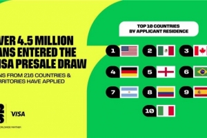 来自216个国家和地区的球迷参加了预售抽签,其中申请数量最多的来自主办国——加拿大、墨西哥和美国的居民。