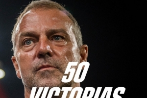 此役是弗里克执教巴萨的第50场胜利,巴萨官方社媒晒出海报,对他表示祝贺。