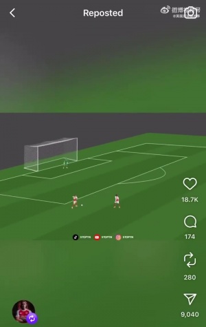 卡拉菲奥里在IG上转发了一段视频,调侃自己对阵曼城时的离谱射门——需要把球门放大到什么程度他才能射进😅🥅