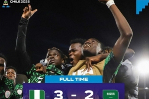 体育资讯10月3日讯 在世青赛F组第二轮比赛中,尼日利亚U20以3-2险胜沙特U20。