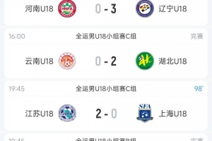 体育资讯10月16日讯 全运会男足U18组今日进行了6场比赛,山东、辽宁、广东均取得胜利,上海则不敌江苏。