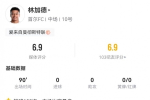 体育资讯10月22日讯 10月22日,亚冠精英联赛东亚区第3轮,上海申花主场2-0击败首尔FC。首尔FC外援林加德本场比赛踢满全场,5脚射门0射正,3次尝试过人均未成功,丢失球权25次。